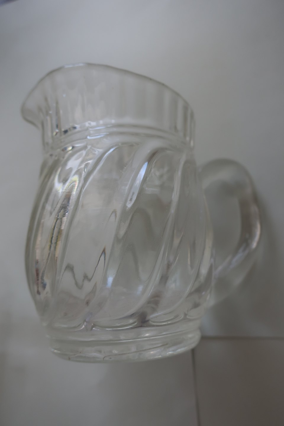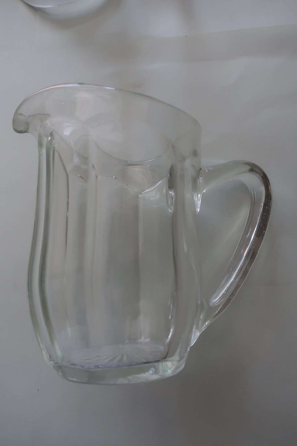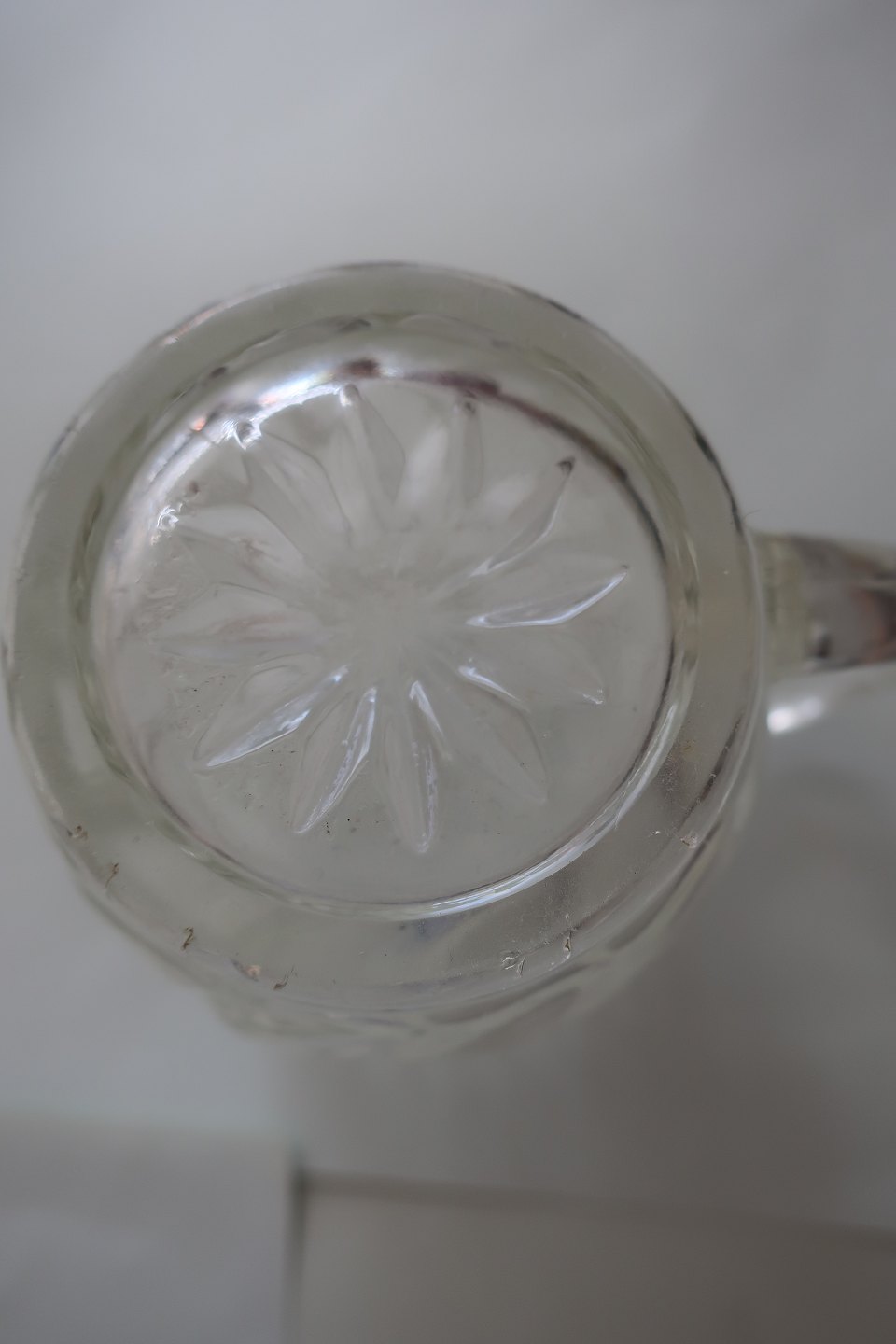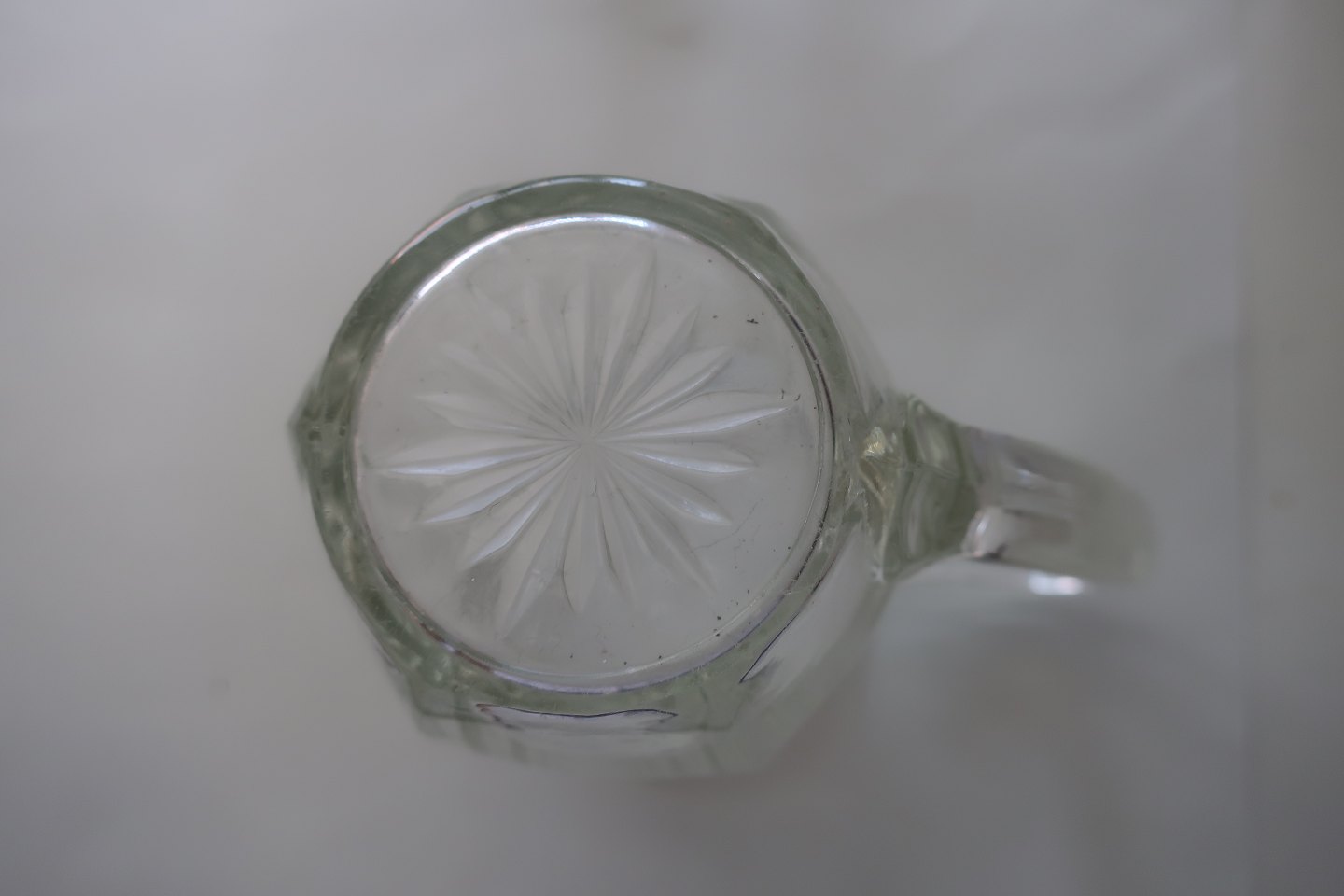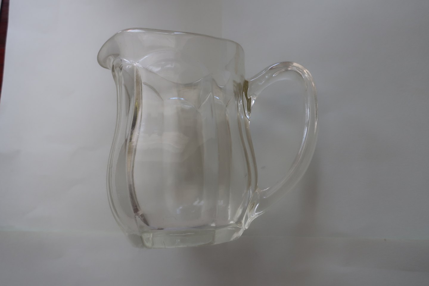 Gamle flødekander af glas Fra ca. 1930 Med stjerne i bunden H: 10cm Kan købes enkeltvis God stand Varenr.: KM1006
