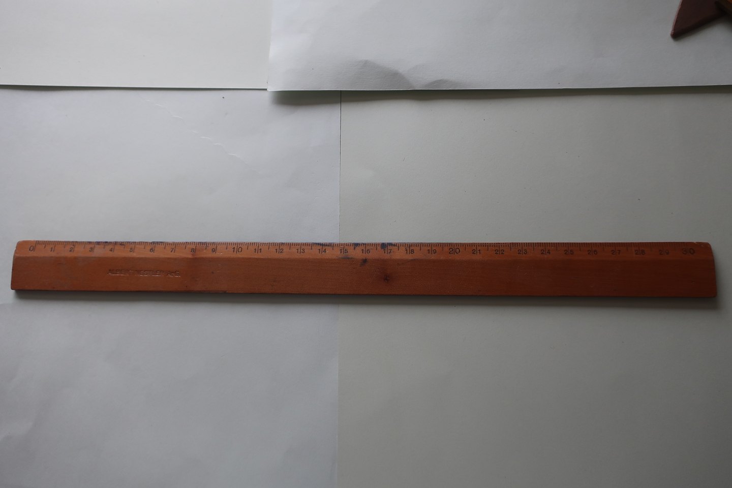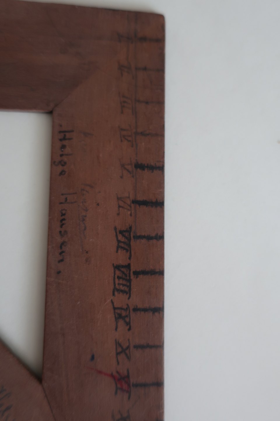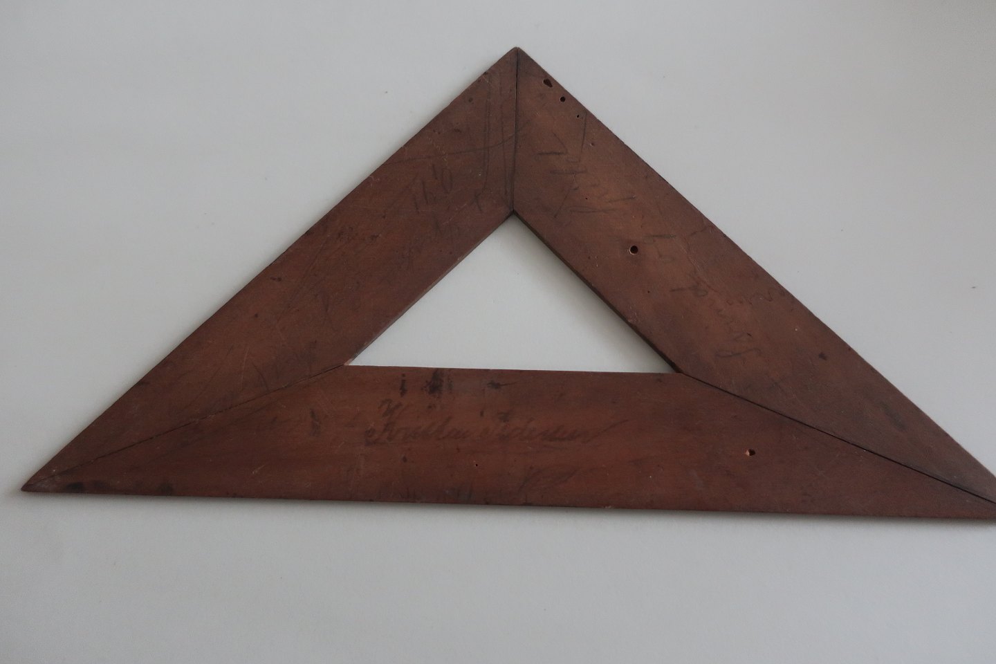 2 vinkler/trekanter (en lille og en stor) og 2 linealer i 2 størrelser