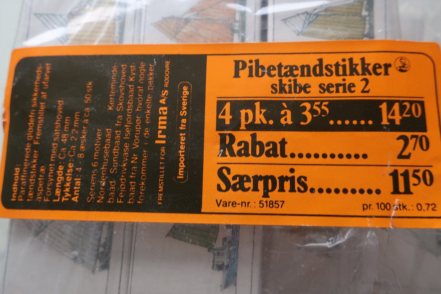Af label fremgår det, at æskerne er "Skibe Serie 2, hele seriens 6 motiver er: