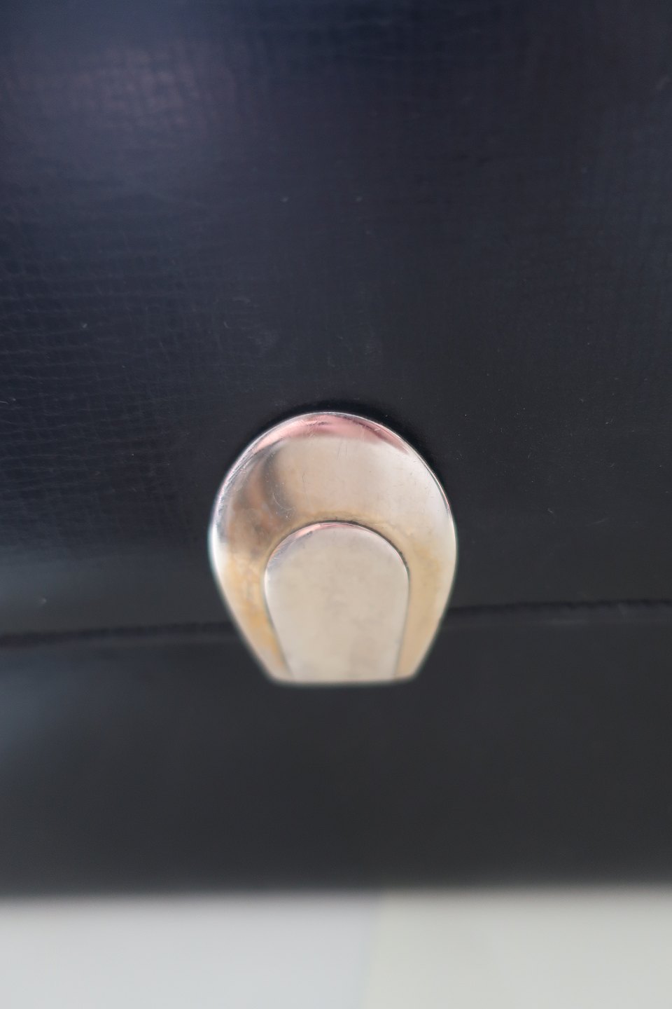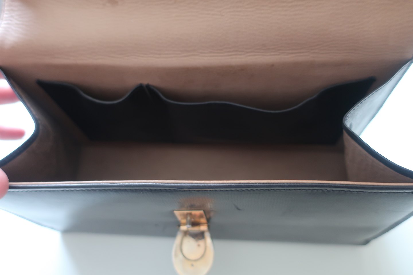 Taske sort med smart lukning Inderlommer L: 23cm H: 12,5cm B i bunden: 27,5cm God stand Varenr.: KM1006