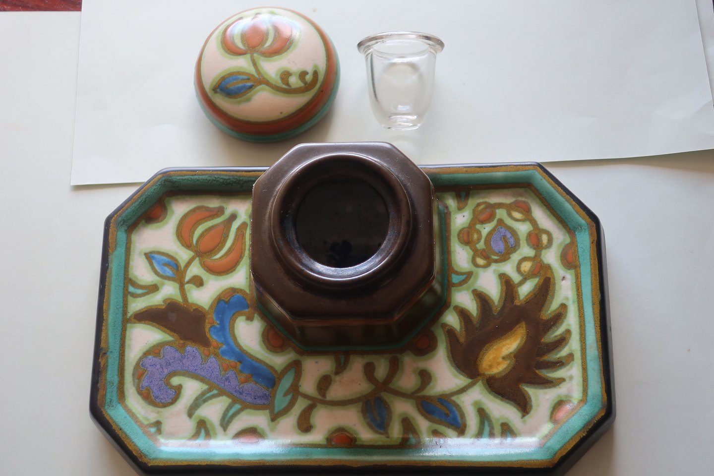 Antikt blækhus med låg og glasindsats L: 21cm B: 13cm 441 Zaberg Gouda Made in Holland Flot stand Varenr.: KH1006