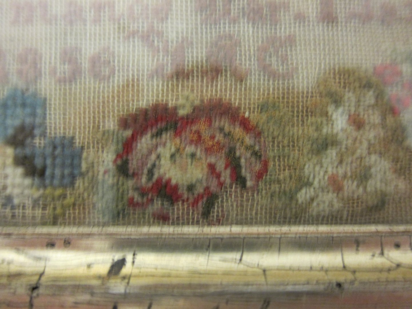 Namentuch, datiert 1856, in einem antikken Silberrahmen