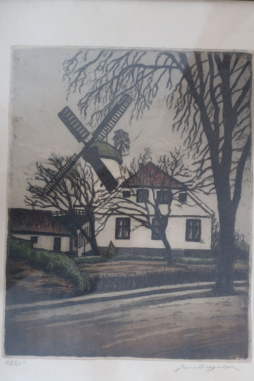 Radering Dybbøl Mølle Signeret af Jens Dragsbo, 21/25 Jens Dragsbo: 1886-1954 51,5cm x 43,5cm God stand Varenr.: 2-810131