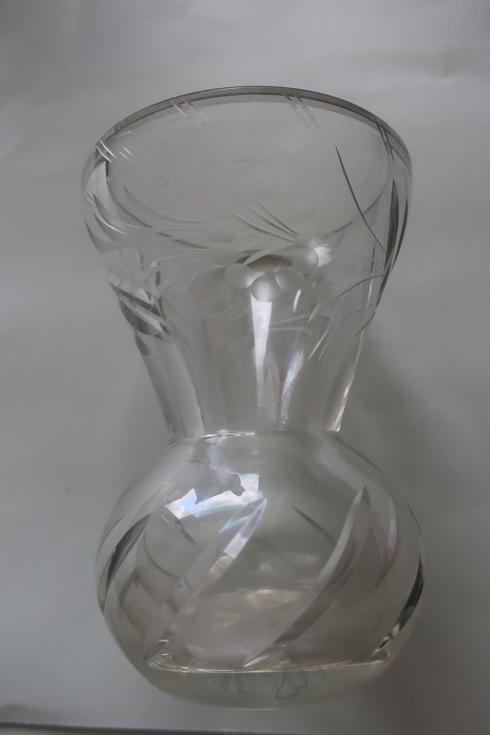 Alte Vase aus Krystal Glas Mit schöner Dekoration im Glas H: 10,5cm B: 8cm In sehr gutem Zustand Warennr.: KM1006