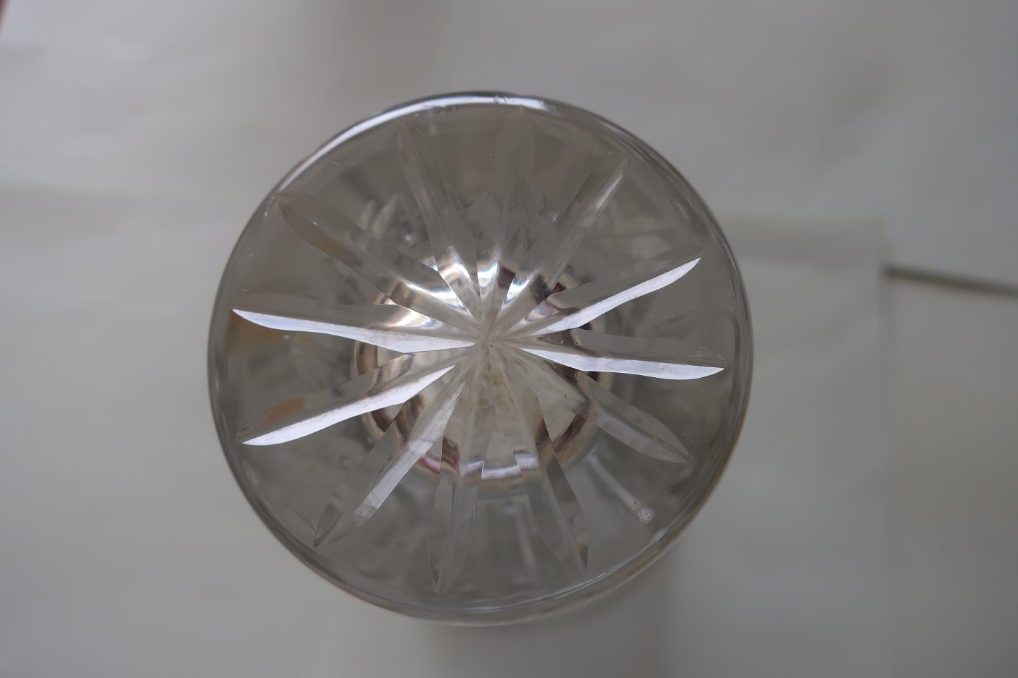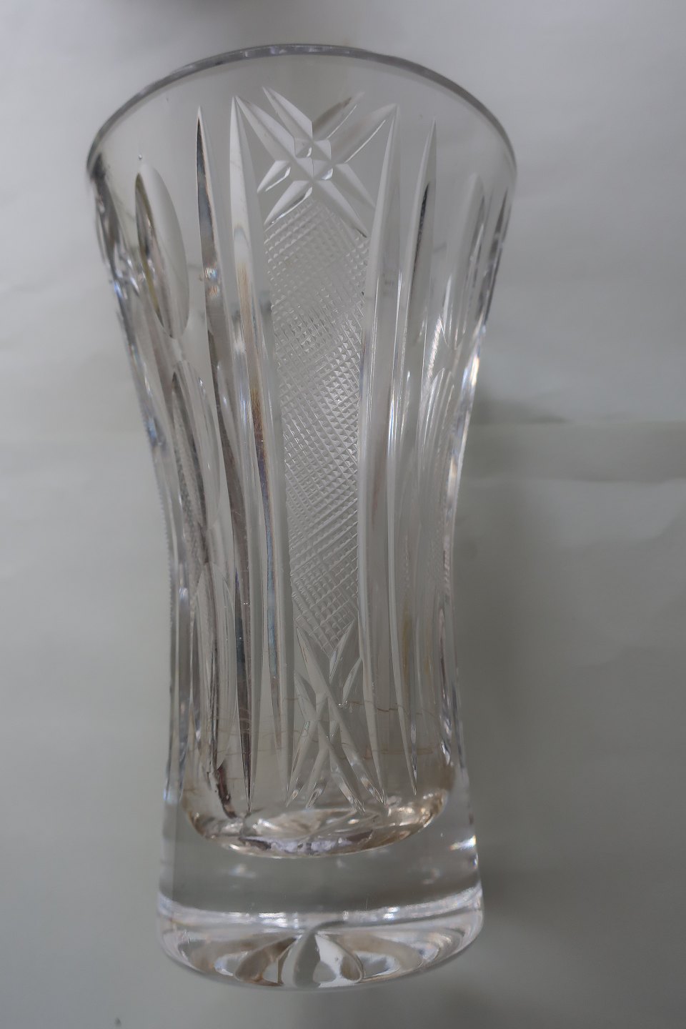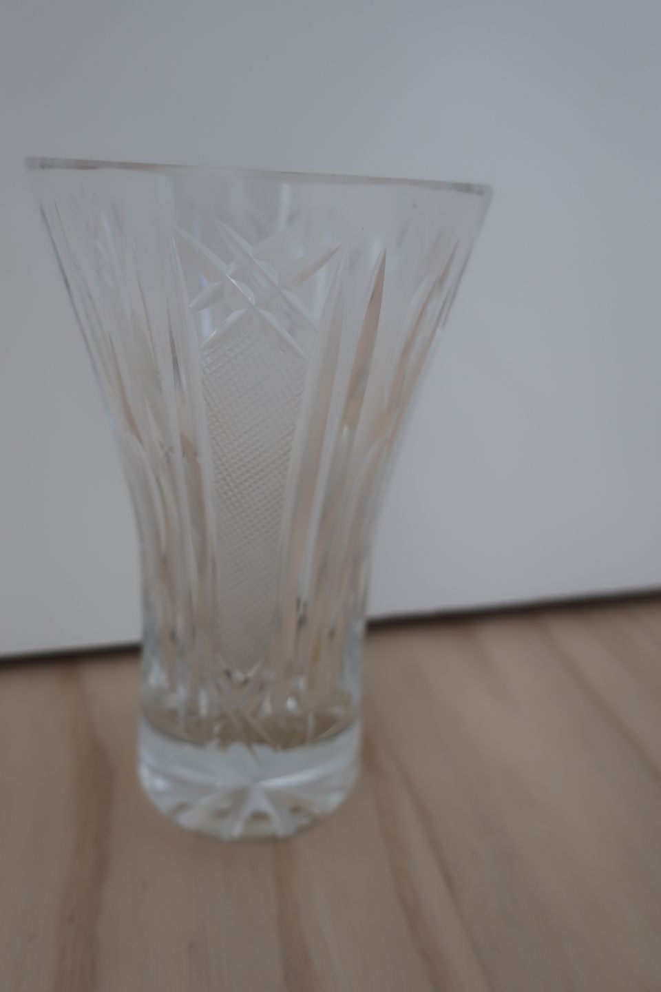 Gammel vase af krystalglas Med smukke slibninger Tung H: 15,5cm Flot stand Varenr.: KM1006